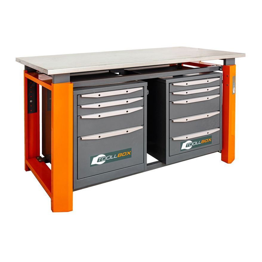 Верстак ТВР1500 (ТВ4–ТВ5) — это рабочее место «всё в одном» для тех случаев, когда на участке важны и прочная столешница, и порядок в инструменте. Двухтумбовая компоновка делает его удобным именно в ежедневной работе: с одной стороны — быстрый доступ к расходникам и часто используемым мелочам, с другой — место для более тяжёлого инструмента и оснастки. Получается понятный, практичный верстак, который помогает держать темп и не распыляться на поиски.